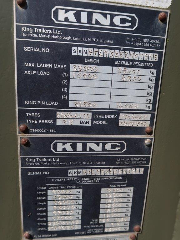 King GTL 93/5HS 5 Axle Low Loader Trailer - MoD Ref: 50300