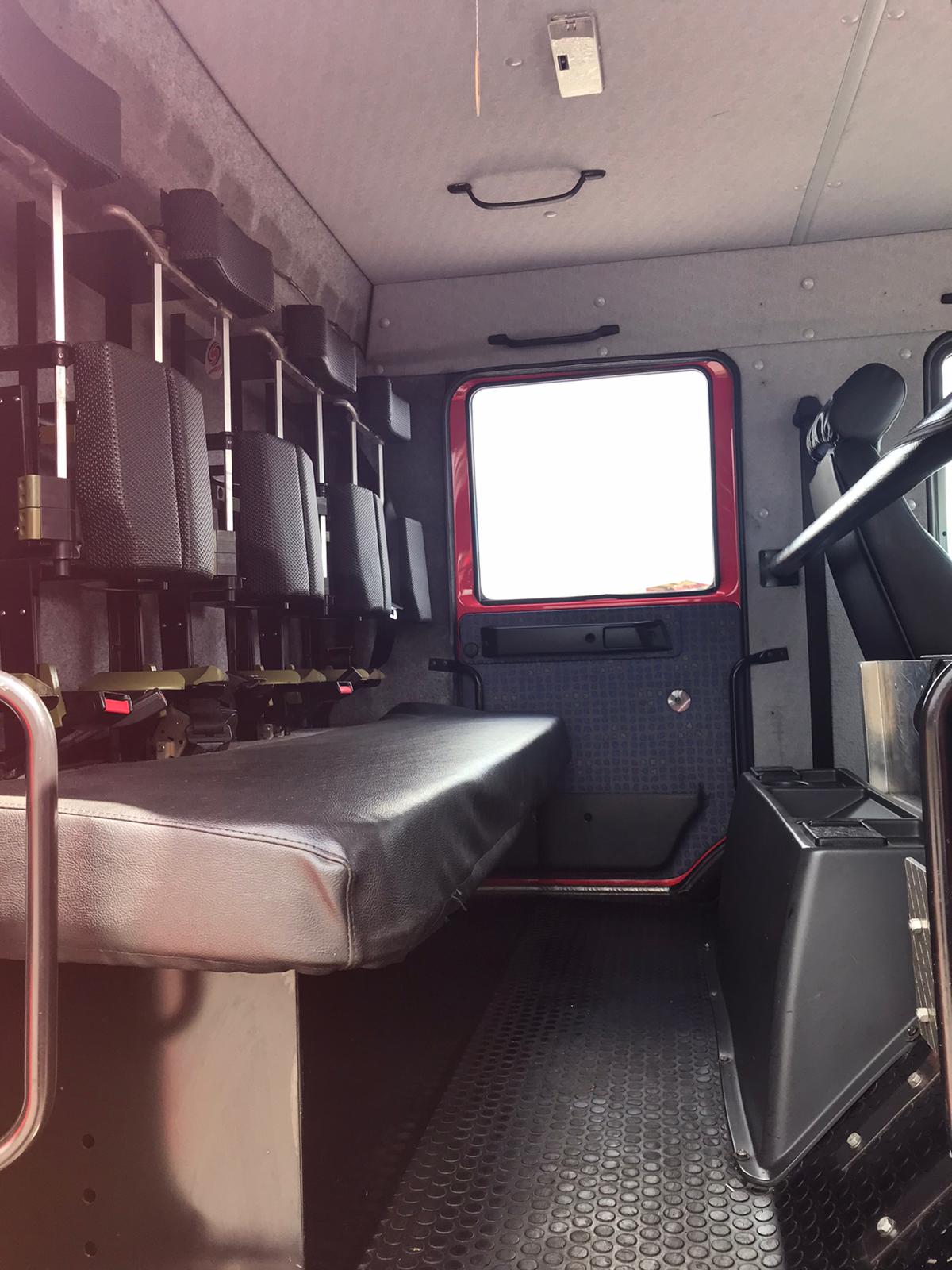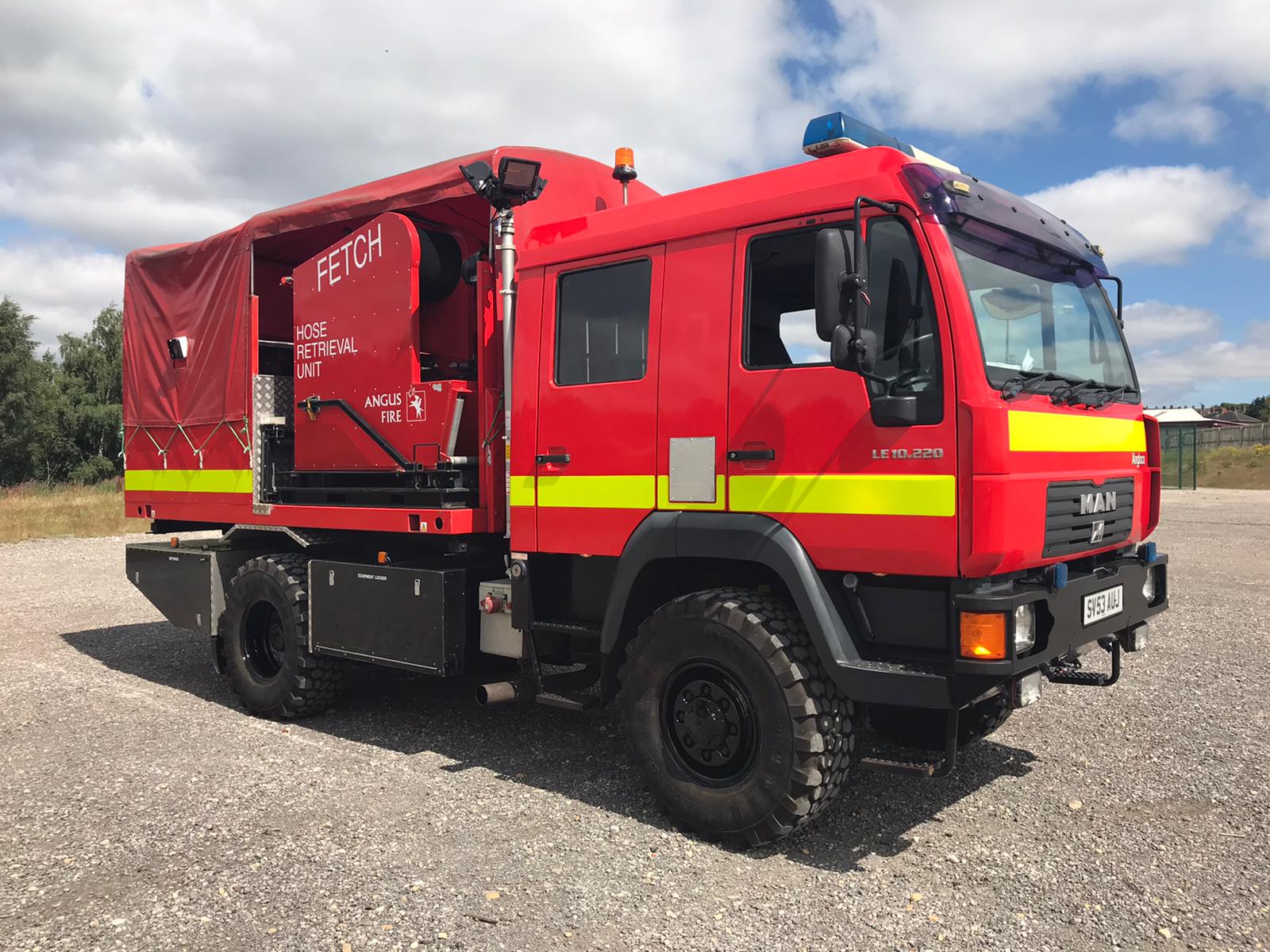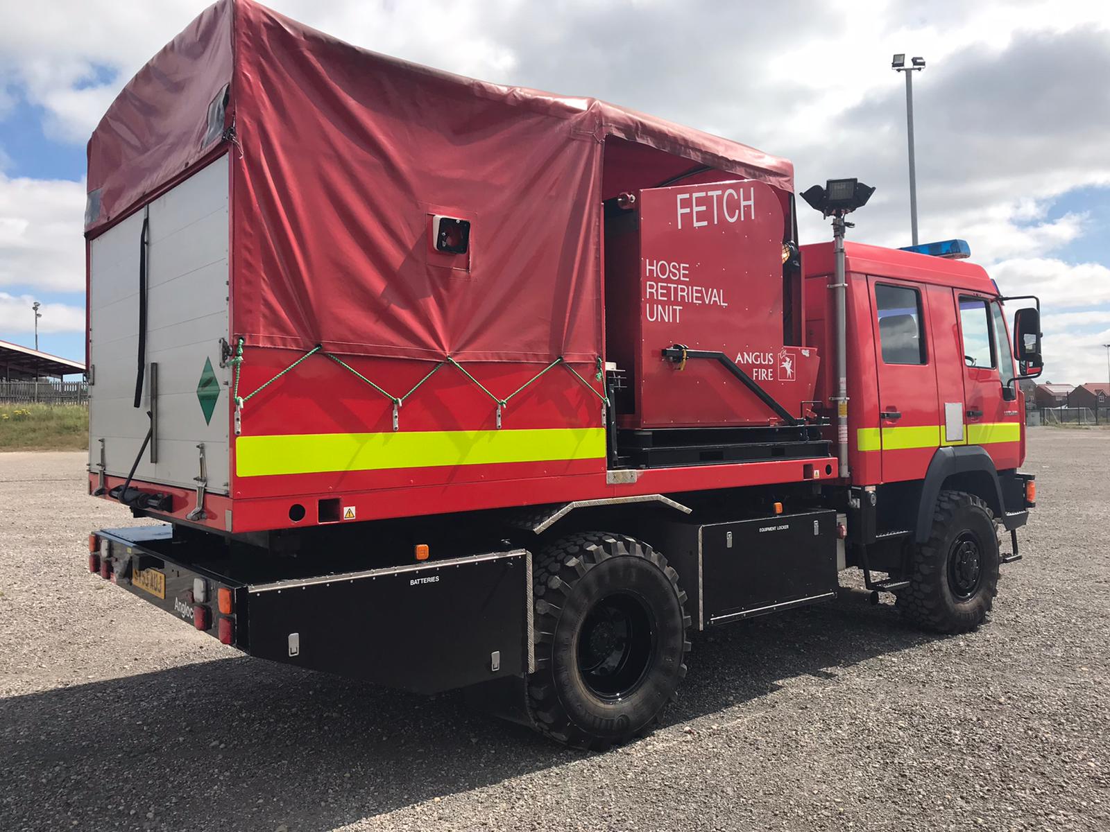 It is configured with a Rosenbauer Fox fire fighting pump, a hose laying / retrieval system and telescopic mast lighting system.