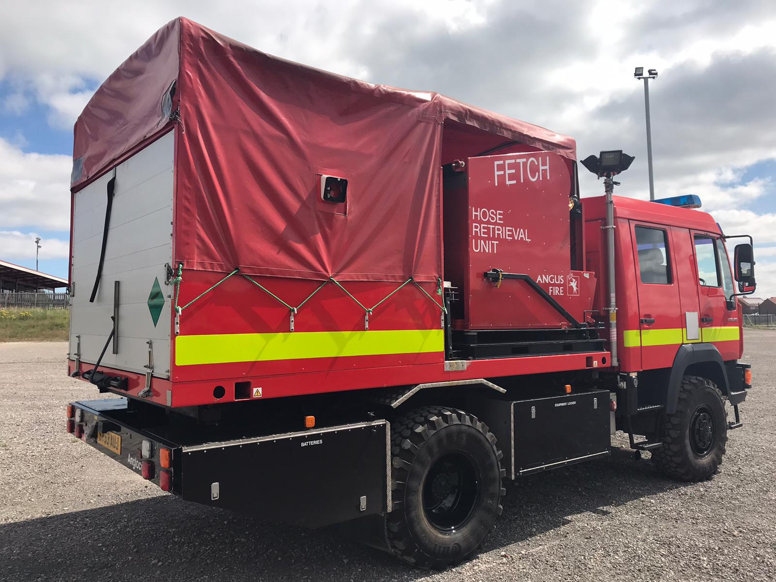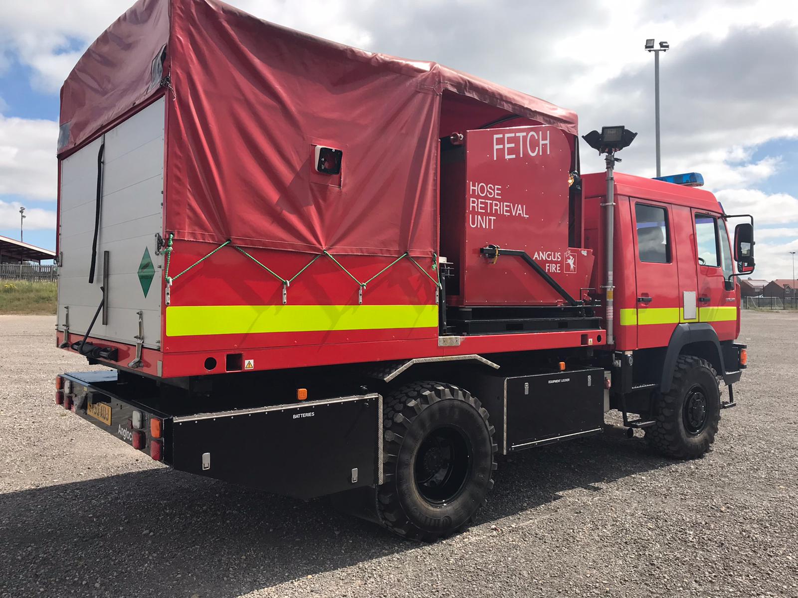 It is configured with a Rosenbauer Fox fire fighting pump, a hose laying / retrieval system and telescopic mast lighting system.