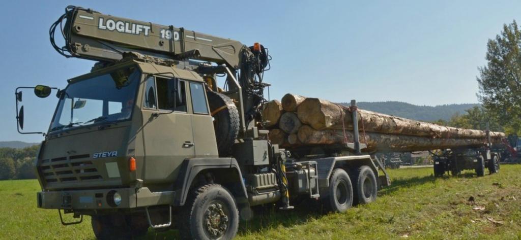 Steyr 1491.310 6×6 Timber Loglift Cargo / Crane Truck - Govsales of mod surplus ex army trucks, ex army land rovers and other military vehicles for sale