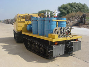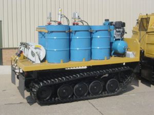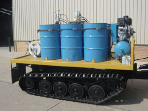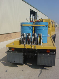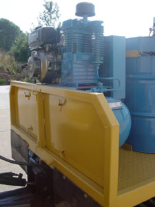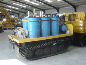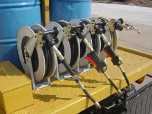 Diesel engine driven compressor with 6 air driven pump units coupled with retractable hose reels for the delivery of air, oils, water etc....
