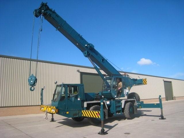 Ex military Grove AT422E all terrain crane, 20 ton capacity with fly jib. Choice of machines in stock, hours from 1,500 only.