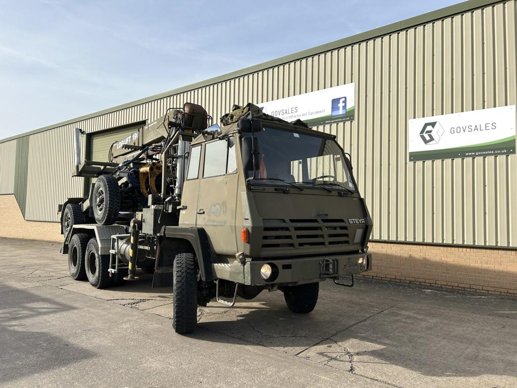 Steyr 1491.310 6×6 Timber Loglift Cargo / Crane Truck - Govsales of mod surplus ex army trucks, ex army land rovers and other military vehicles for sale